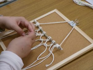 《マクラメ》とは、紐や糸を手で編み、結び目を作ることで