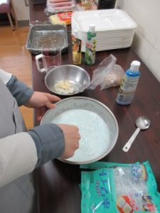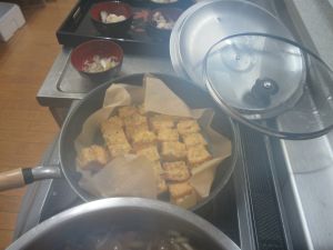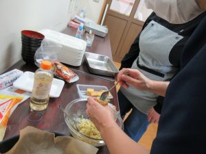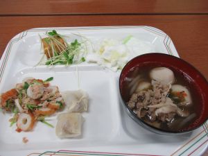 メニューは「芋の子汁・おてがるシュウマイ・厚揚げのねぎみそチーズ