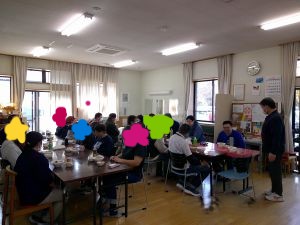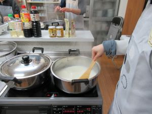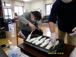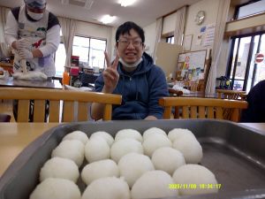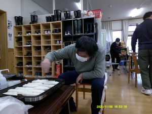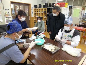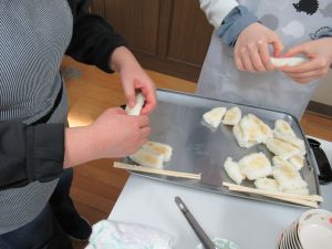 活動室内ではきりたんぽ&だまこ作り。