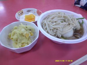 メニューは「だまこもちうどん・さつまいものクリームきんとん・杏仁豆腐」でした。