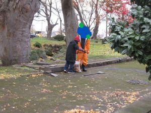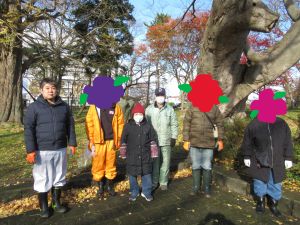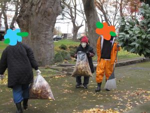 時々交流しながら、枯葉を集めたり、ゴミ袋に詰めたり。