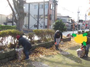 枯葉の山になっている、けやき公園の清掃を頑張りました。